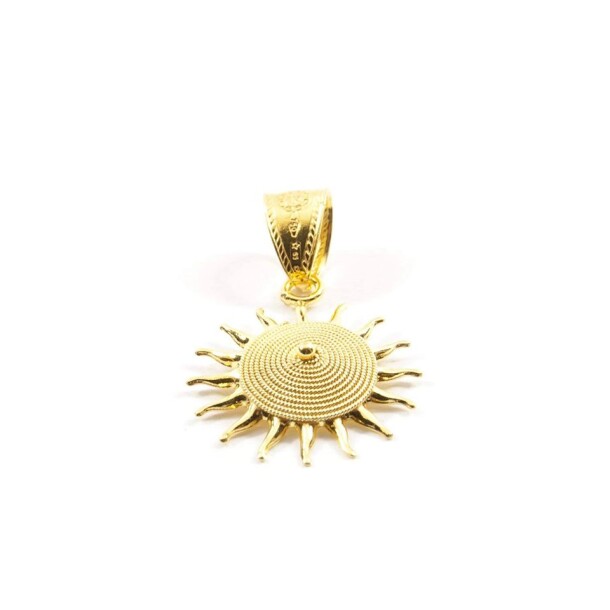 Ciondolo corbula sole in filigrana d’oro giallo. La corbula è una rivisitazione in chiave moderna del bottone sardo e riproduce la classica conformazione a spirale dei cestini sardi “crobis”. Interamente realizzato a mano.