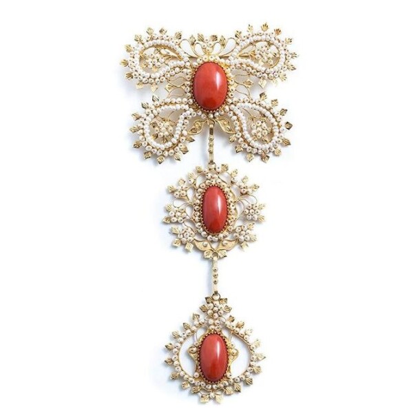 - Materiali: Oro, Corallo, Conchiglie e Madreperla , Perle